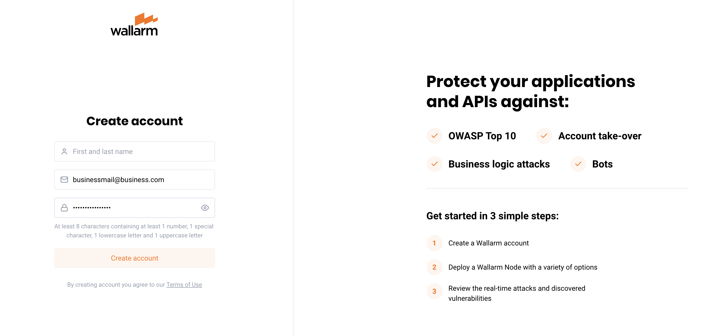 Fill in and confirm the registration form in Wallarm Console in the US Cloud or EU Cloud.