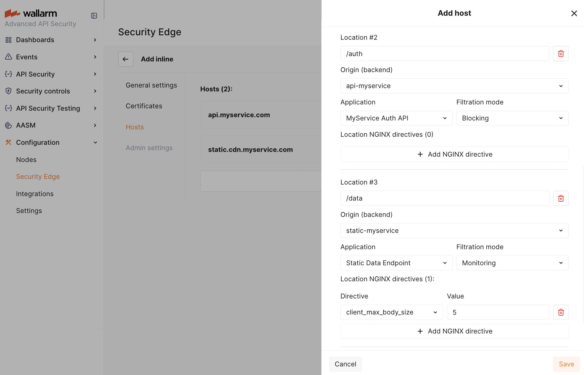 ):- Origin where the Wallarm Node will forward the filtered traffic (if no other location-specific settings are defined). The location's path is automatically appended to the origin.