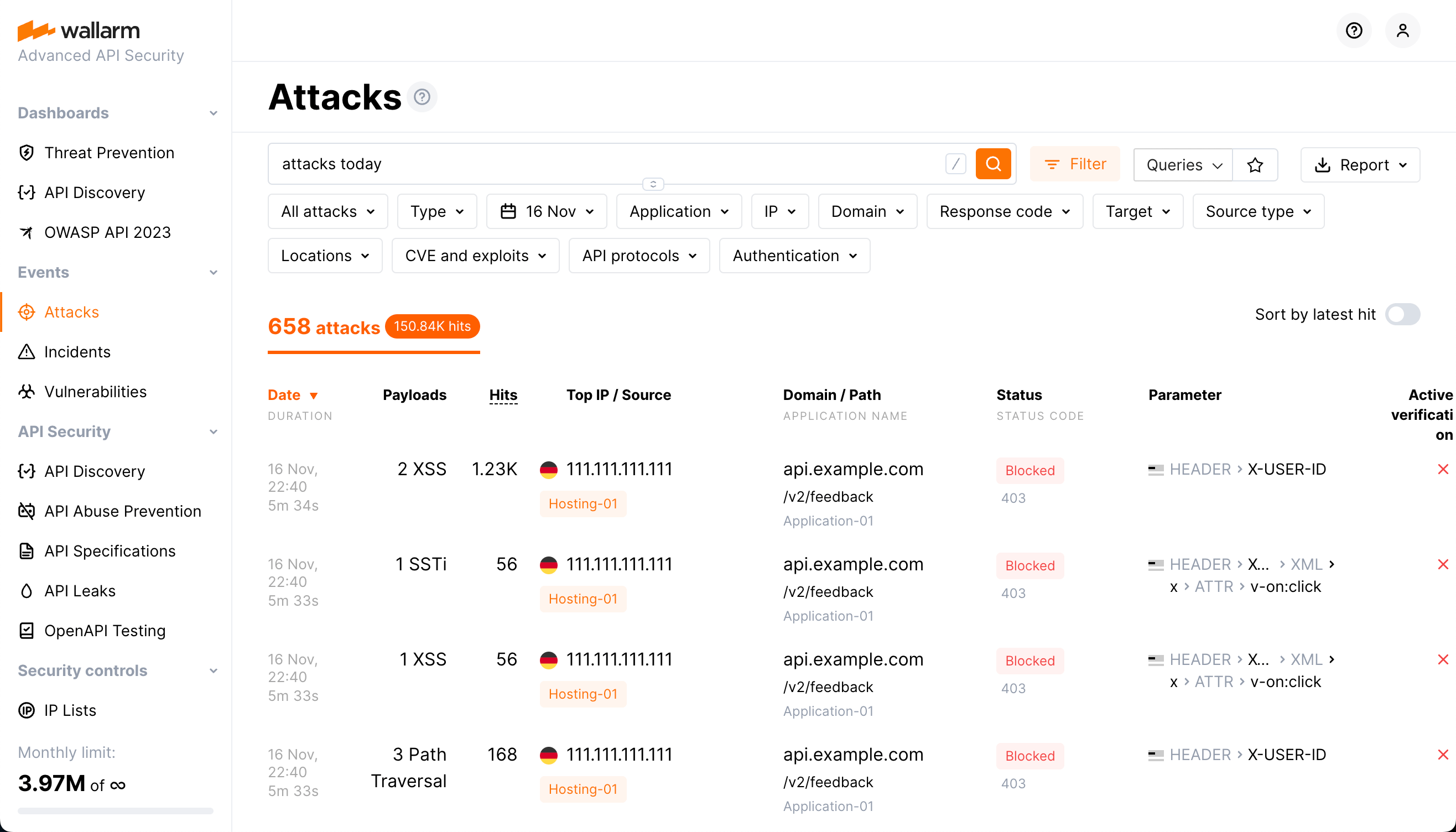 The Wallarm platform continuously analyzes API traffic and mitigates malicious requests in real-time. From this article, you will learn resource types Wallarm protects from attacks, methods of detecting attacks in traffic and how you can track and manage detected threats.