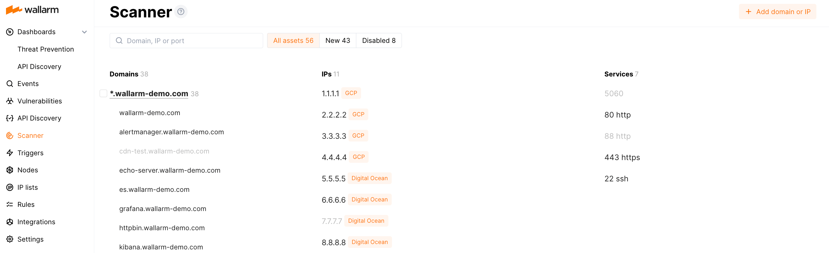 The API Attack Surface Discovery (AASD) component of the Wallarm's API Attack Surface Management scans your selected domains to discover all their external hosts and their APIs, evaluate their protection against Web and API-based attacks, and identify missing WAF/WAAP solutions. It works simply by subscribing in Wallarm - you do not need to deploy anything. This article gives an overview of the component.