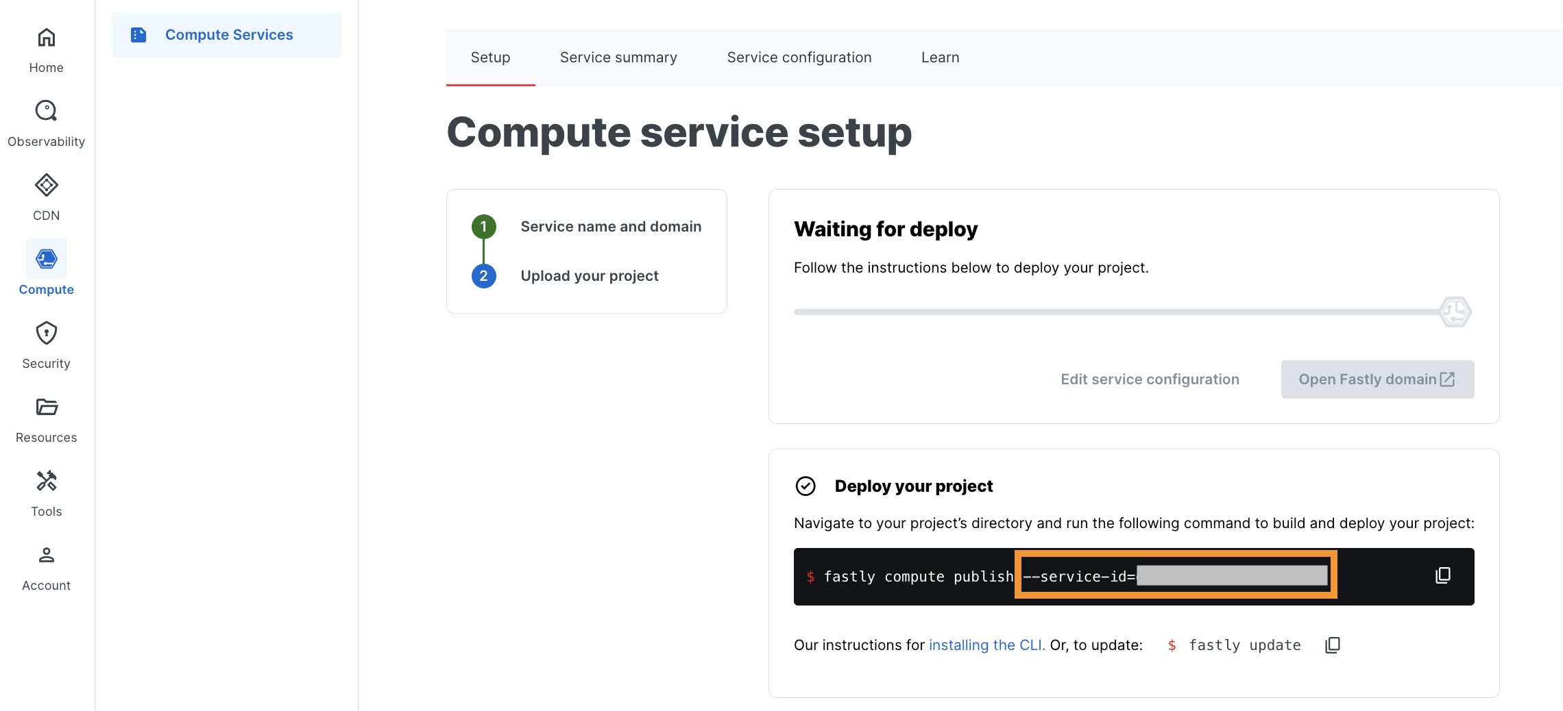 fastly compute deploy --service-id=<SERVICE_ID> --package=wallarm-api-security.tar.gz --token=<FASTLY_TOKEN>