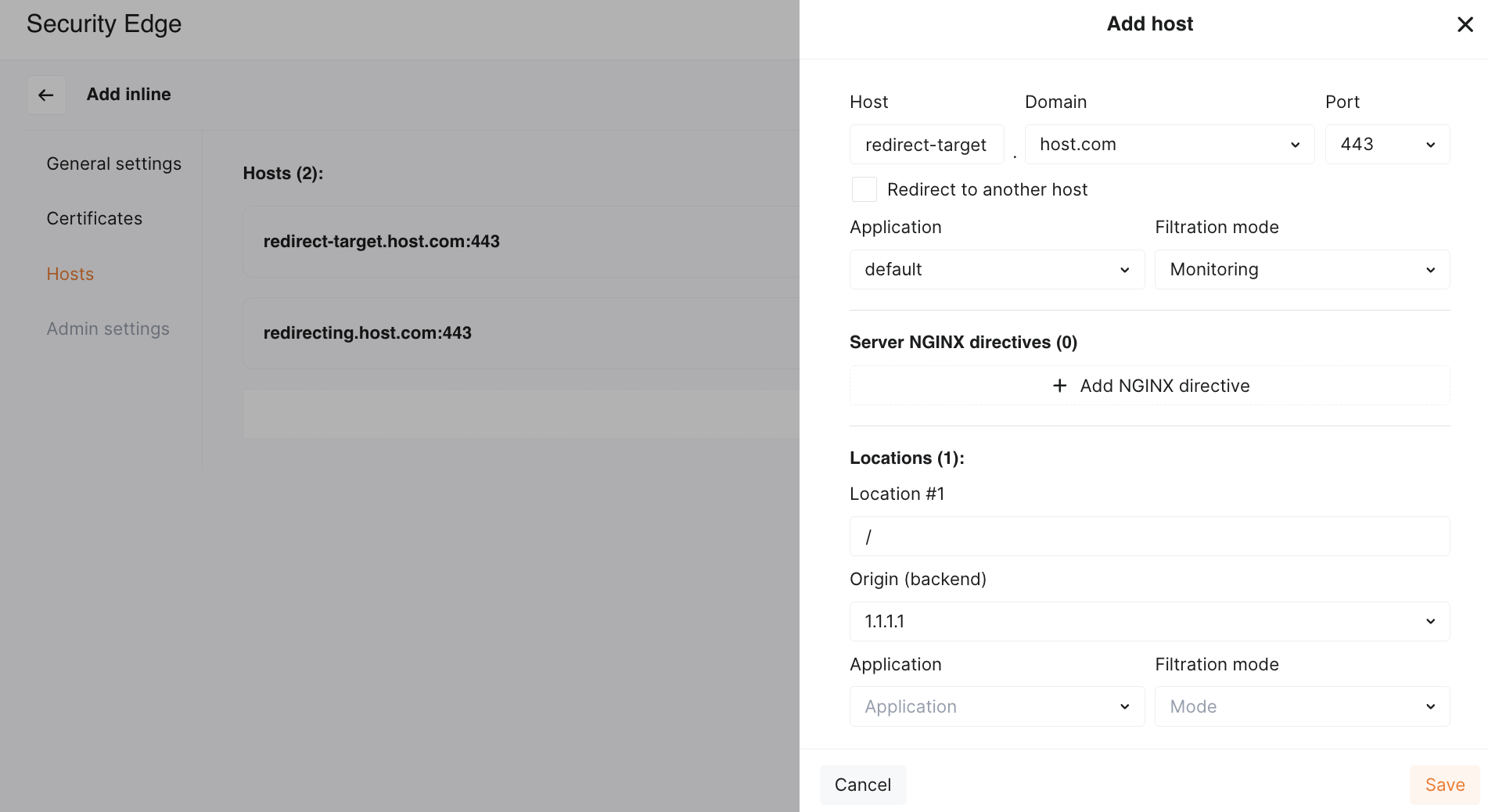 Wallarm Security Edge Inline provides a host redirection feature to help you unify traffic entry points.